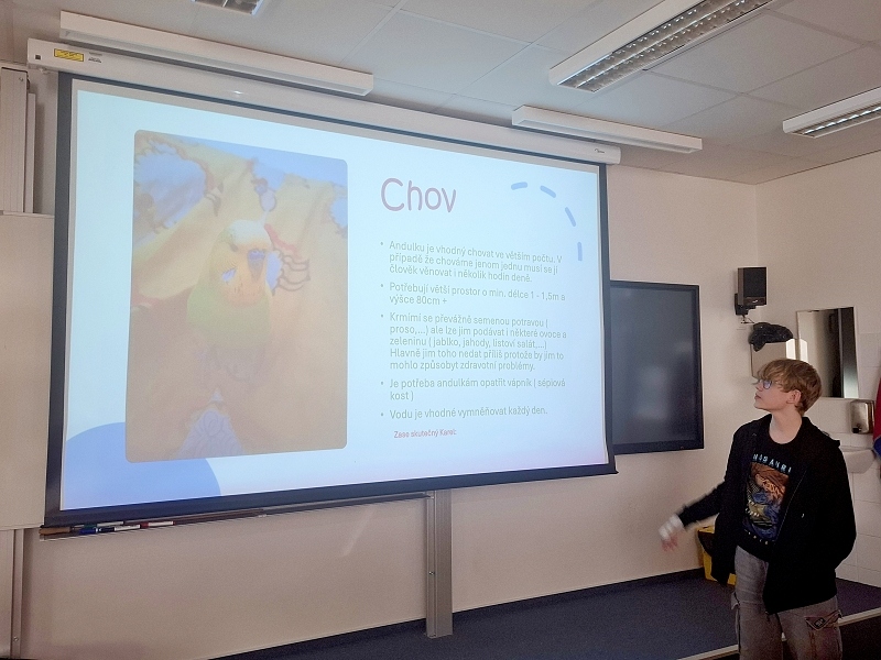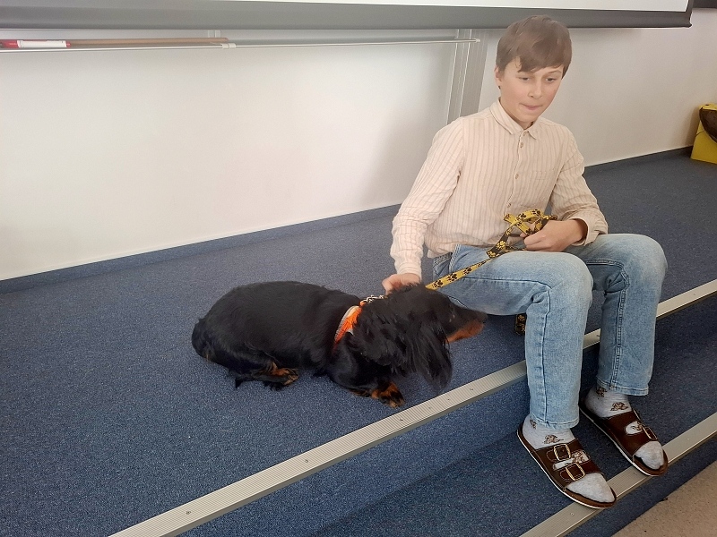 Ti, co nemohli své mazlíčky přivést, připravili pro ostatní alespoň prezentace, a tak jsme si dál povídali o siamském kocouru Oliverovi nebo třeba andulce Karlovi. Myslím, že jsme všichni v této hodině načerpali spoustu energie, protože takové láskyplné povídání o domácích mazlíčcích pohladí po duši a příběhy, které tato soužití přinášejí, vyloudí nejeden úsměv na rtech.