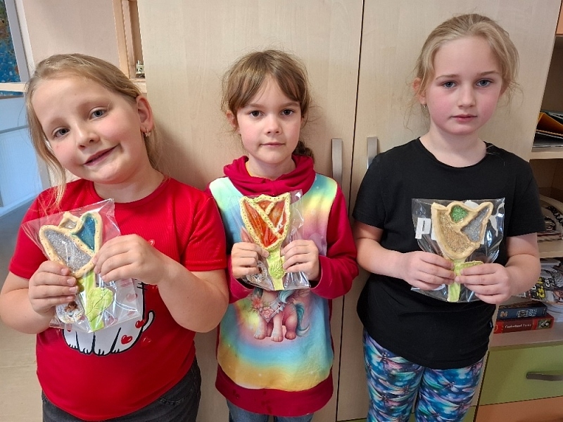 Děti procvičily prstíčky a vymodelovaly z hlíny květ tulipánu pro  maminky k jejich svátku. Každý květ byl originál a děti měly z výrobku velikou radost.