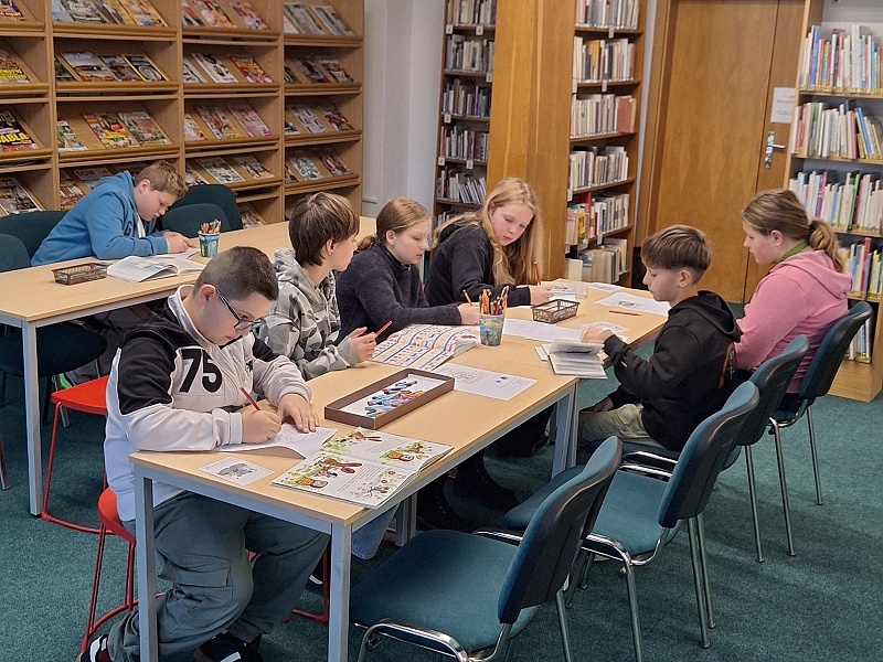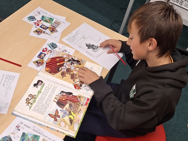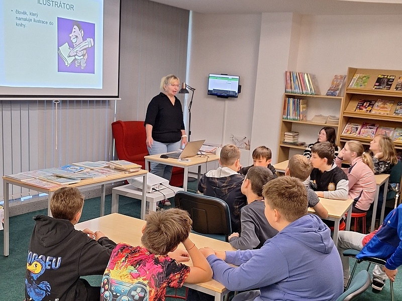 Paní knihovnice si pro ně připravily zajímavý program s názvem Čeští ilustrátoři. Žáci se seznámili s tvorbou nejznámějších českých ilustrátorů, naučili se pracovat s elektronickým katalogem knihovny a dle zadaných pokynů vyhledávali konkrétní knihy. Po splnění úkolu je čekala sladká odměna. Děkujeme za krásný program.