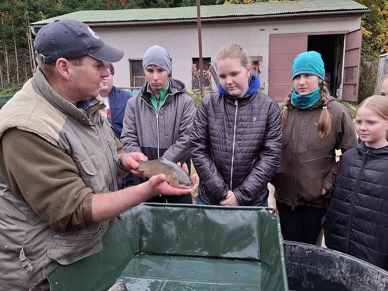 Měli zde možnost nahlédnout pod pokličku chovu ryb, seznámit se s našimi nejběžnějšími druhy, zopakovat si stavbu těla ryby i různý způsob jejich života a přizpůsobení k prostředí. Vše jim poutavě vysvětlil a ukázal pan Rostislav Mikeš.