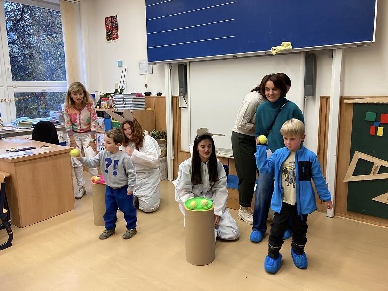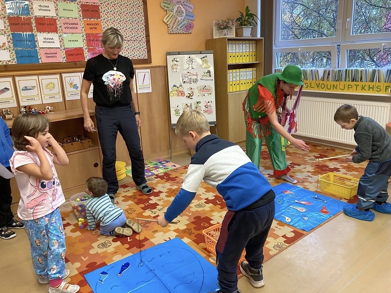 Akce s názvem Hrajeme si s Večerníčkem měla probíhat venku v okolí přístavby školy na Sportovní ulici, ale nepřálo nám počasí, a proto se pohádkové postavičky přestěhovaly do prostor školy. Od 15:30 hodin ožila budova veselým hemžením budoucích prvňáčků. Přišli společně se svými rodiči, aby si pohráli a zasoutěžili na pohádkových stanovištích.