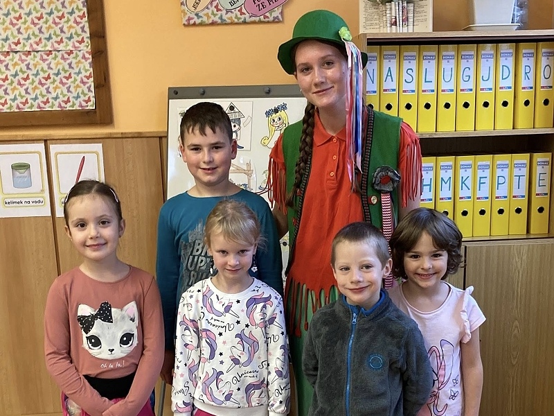 Čekaly je postavy z pohádek. Pohádkovými postavičkami se na chvíli staly žákyně devátých tříd. Na stanovištích plnily děti nejrůznější úkoly, které pro ně nachystaly paní učitelky 1. stupně naší školy. Děti s přehledem poznávaly pohádkové hrdiny z Večerníčků a plnily rozmanité úkoly. Na závěr na ně samozřejmě čekala odměna a ani se jim nechtělo odcházet.