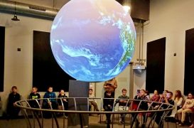 Díky obrovské projekční kouli se všichni dozvěděli, že vesmír vznikl velkým třeskem – obrovskou explozí, při které se z ničeho zrodilo úplně všechno. Postupně se tvořily hvězdy, planety i naše Země. A až po miliardách let se na ní objevil život – nejdřív v moři, pak i na souši.
