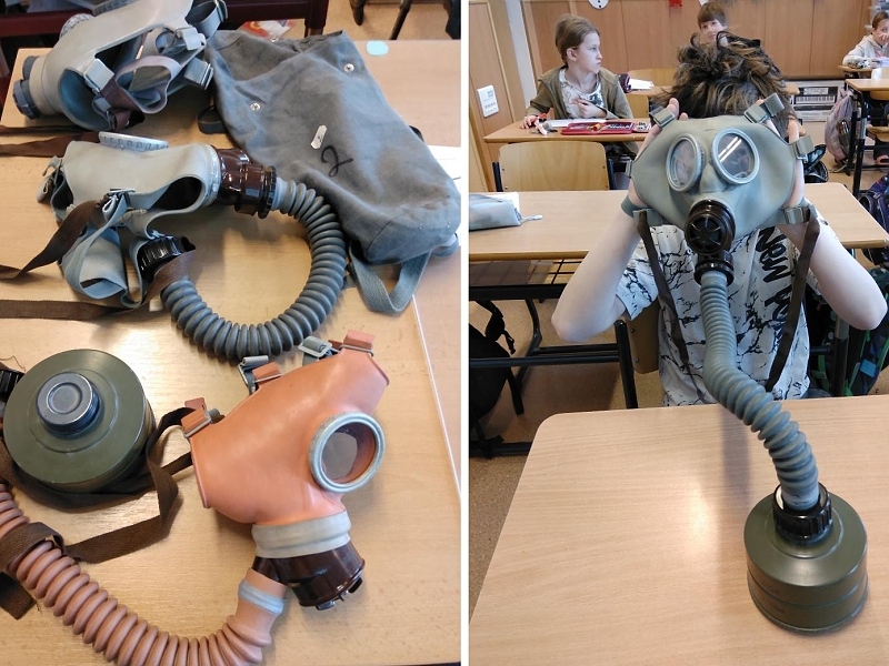 K polnímu telefonu, ochranným přilbám armádních jednotek rozličných zemí a vojenským nosítkům přibylo ještě něco navíc – takovou malou třešinkou na dortu byla ukázka plynových masek, které v minulosti sloužily k ochraně obličeje, očí a dýchacích cest. Chránily jejich nositele před vojenskými chemickými látkami ve vzduchu.